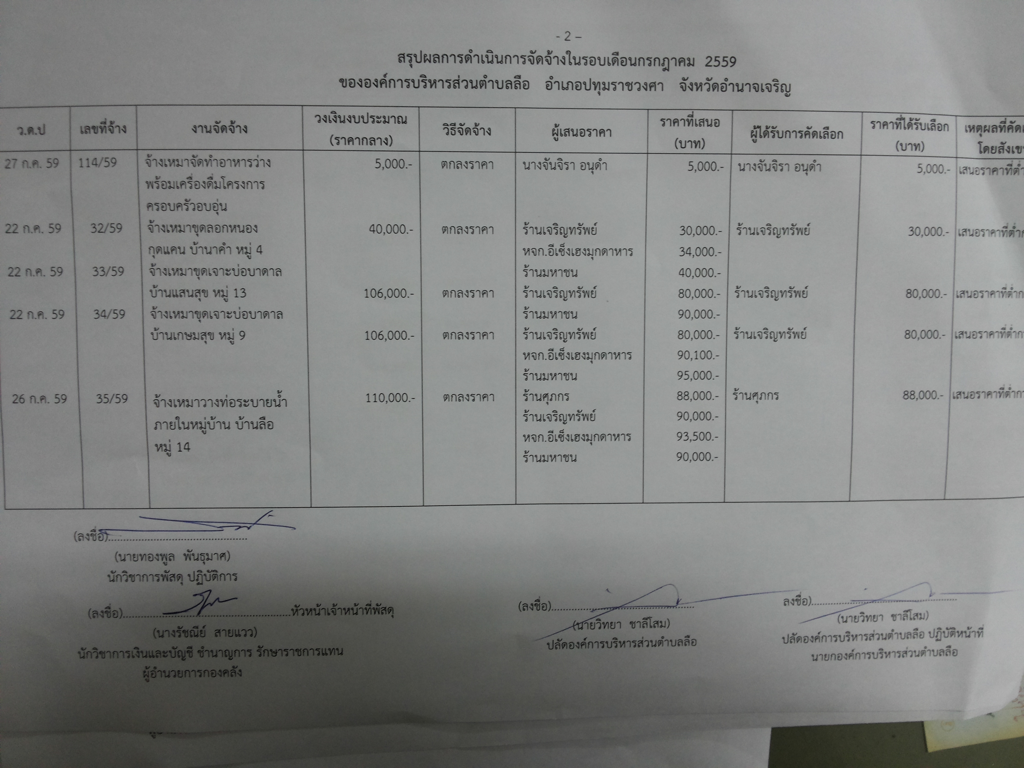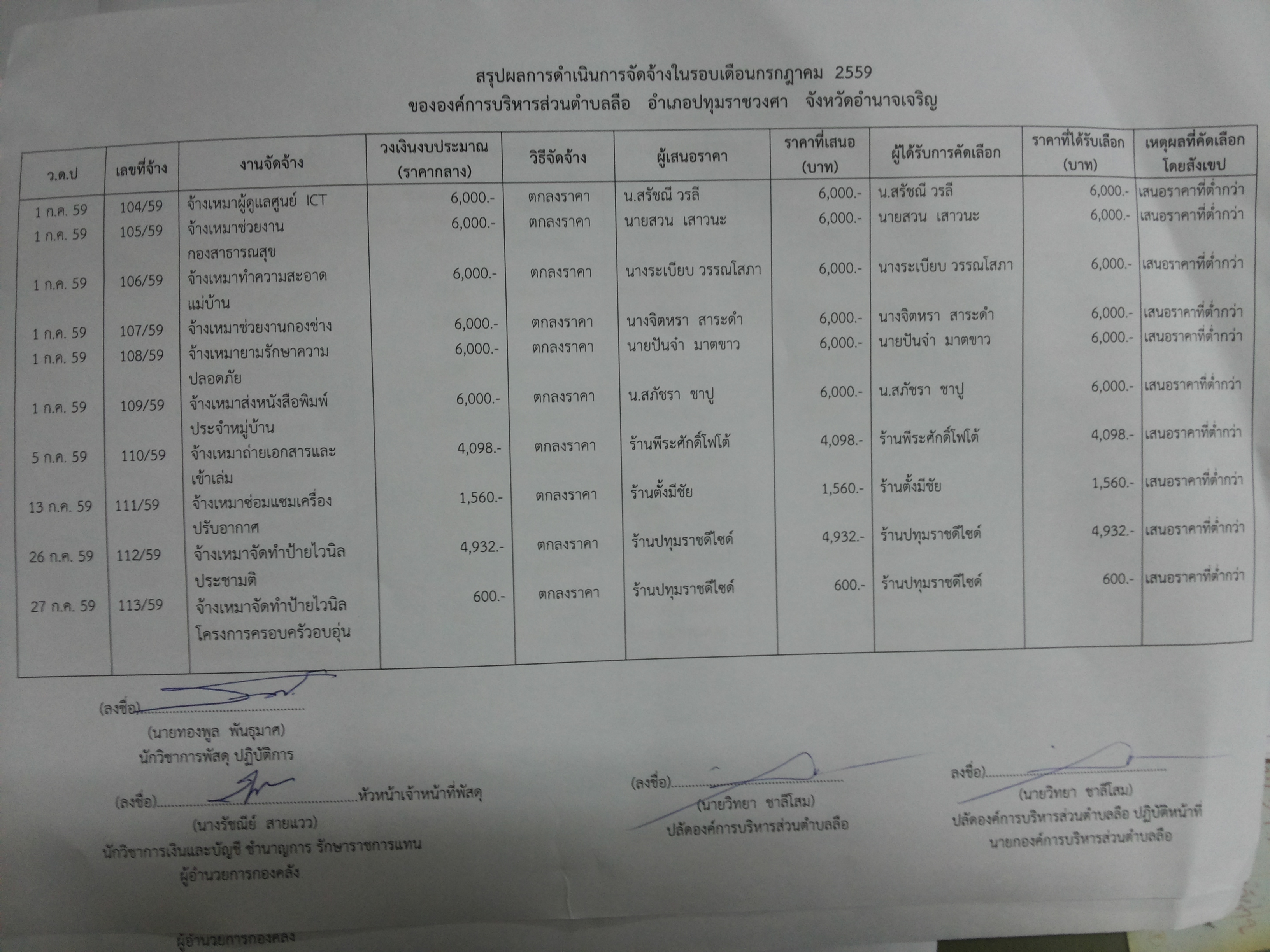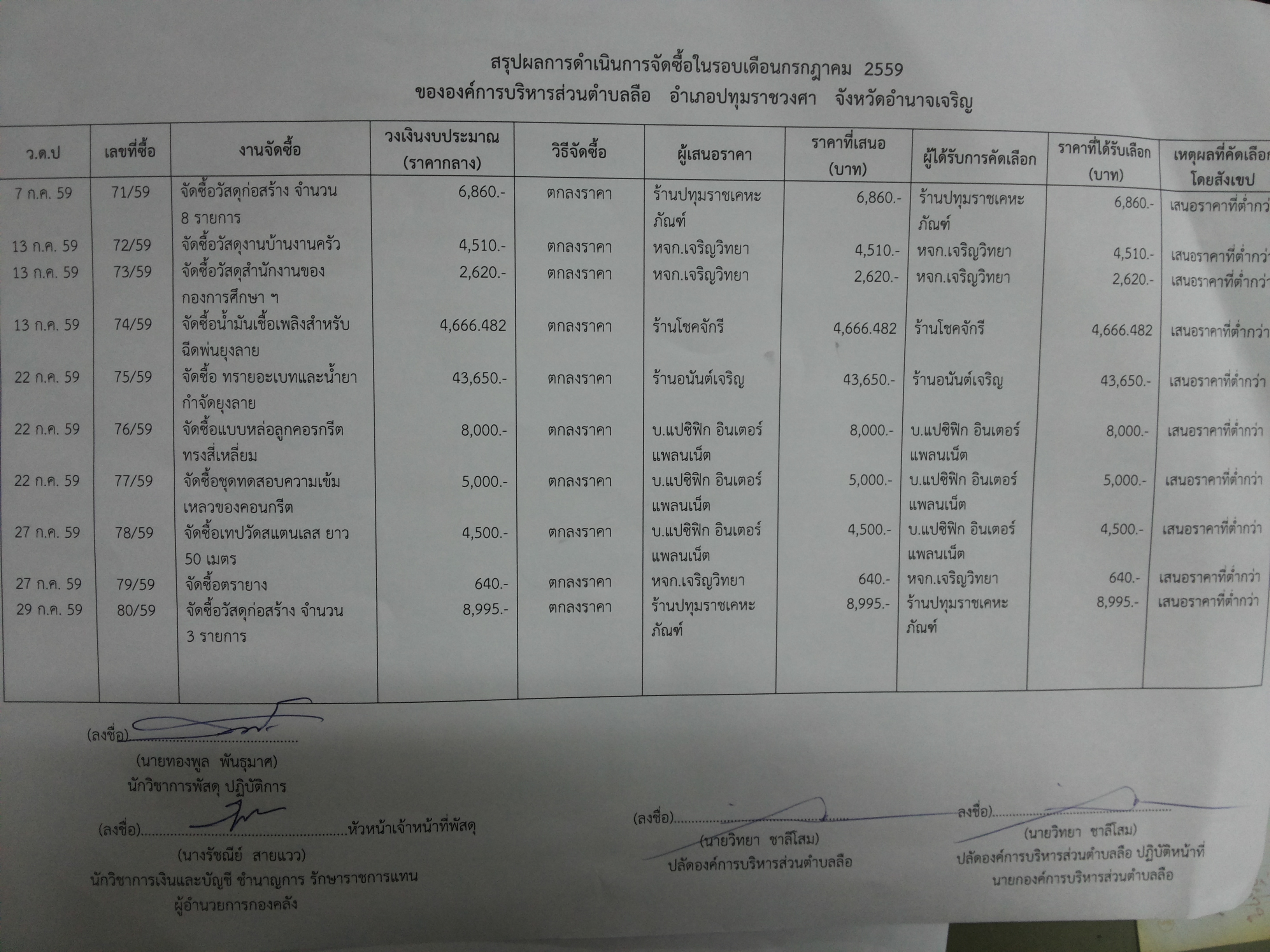 สรุปผลการดำเนินการจัดซื้อจัดจ้างในรอบเดือนกรกฎาคม 2559